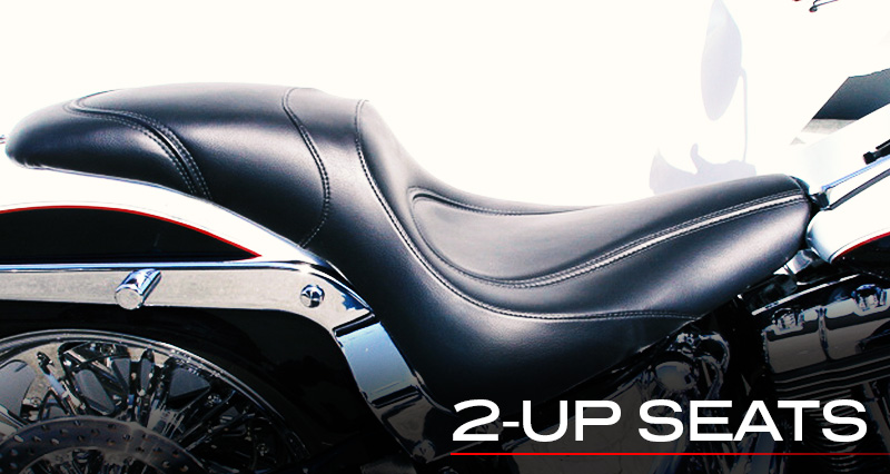 We offer 3 different styles of 2up seats. The low pro, The square back and the sport touring. All 3 can have a 2” push added to them as well as a drivers removable backrest. We also offer custom air bags for all of our seats. Please call us to design your seat and its cover!